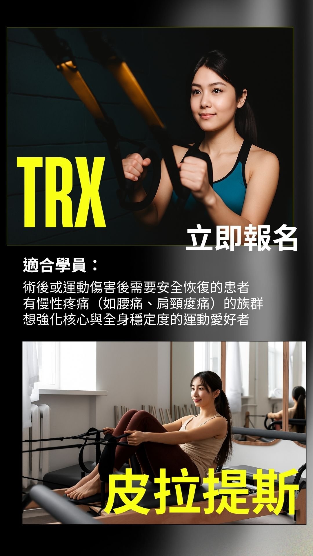 透過客製多元的訓練,聚焦你當前的身體議題,讓你的全身進行修復, 打造穩定從容的體態,快來重新啟動吧。